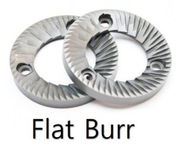 주로 전동식 그라인더에서 많이 사용하고 있는 날 방식입니다. 분당 1,400~1,600 rpm으로 회전합니다. 회전수가 높고 평면형으로 고른 분쇄가 가능하다는 정점을 가지고 있습니다. 하지만 날 재질 및 사이즈에 따라 마찰력 발생이 많은 경우 커피 맛을 해칠 수도 있습니다.